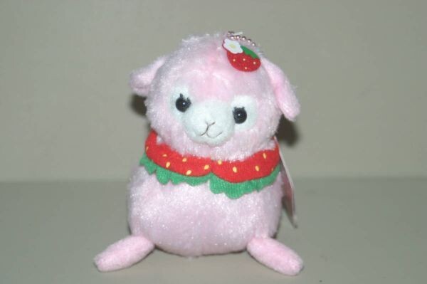 - ベイビーアルパカッソ ラブベリー ぬいぐるみ いちごみるくちゃん ピンク 約10cm ボールチェーン付き