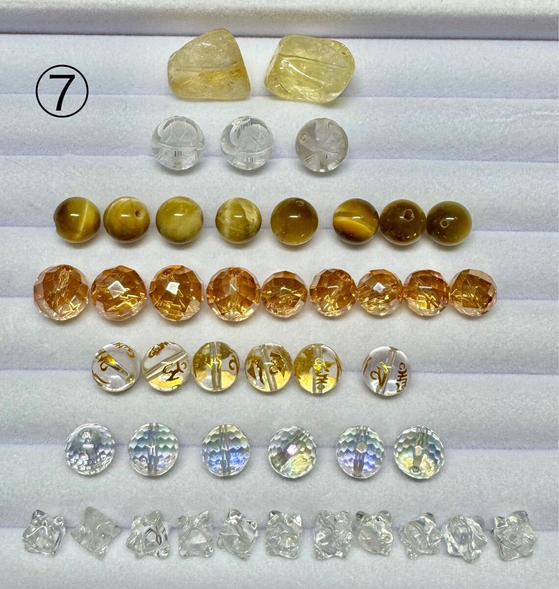 > ◆ 天然石 ビーズ イエロー系セット ⑦ シトリン タイガーアイ 六字真言 玄武彫 オーラ水晶 他 ☆。.:*・゜