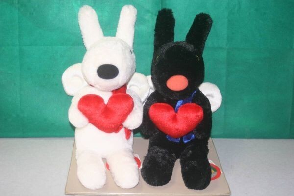 - リサとガスパール エンジェル ぬいぐるみ Mサイズ 2体セット 約31cm サンアロー製品 2007年 赤いハート 天使 羽 ペアで!!