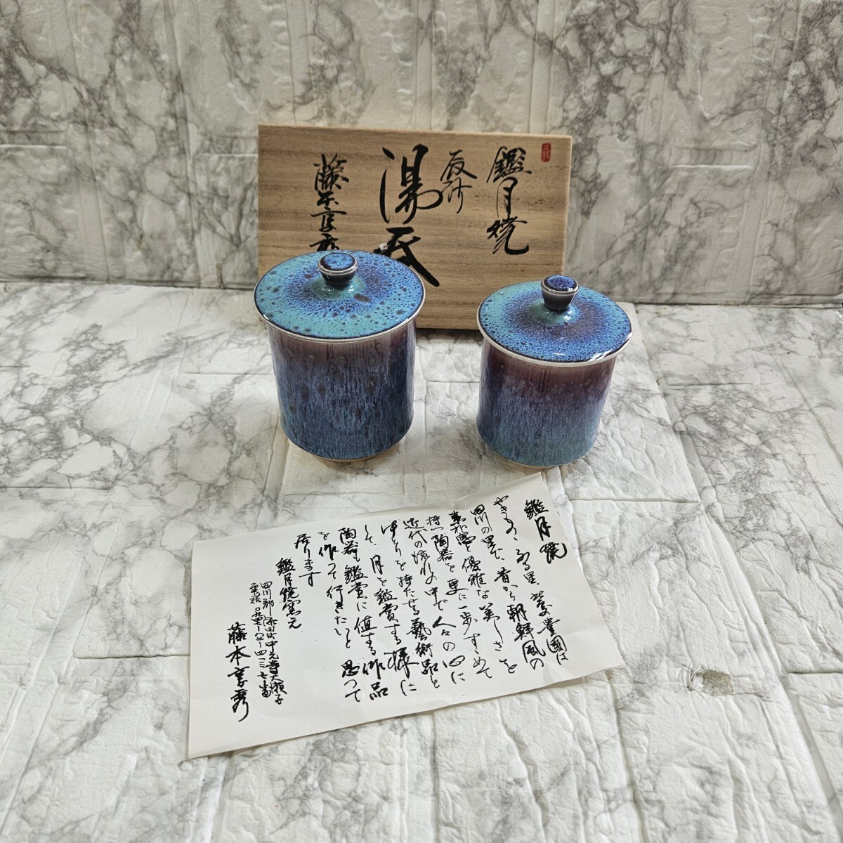 - 【未使用】鑑月焼 湯飲み 夫婦 和食器 蓋付き 食器 コレクション