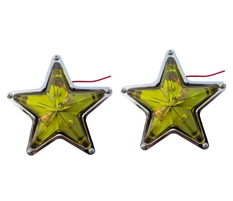 - 星型汎用レトロガラスLEDマーカーイエロー黄色電装電飾装飾直径約144mm奥行約45mmスターマーカー12V/24V兼用 JP-LP013-YLx2