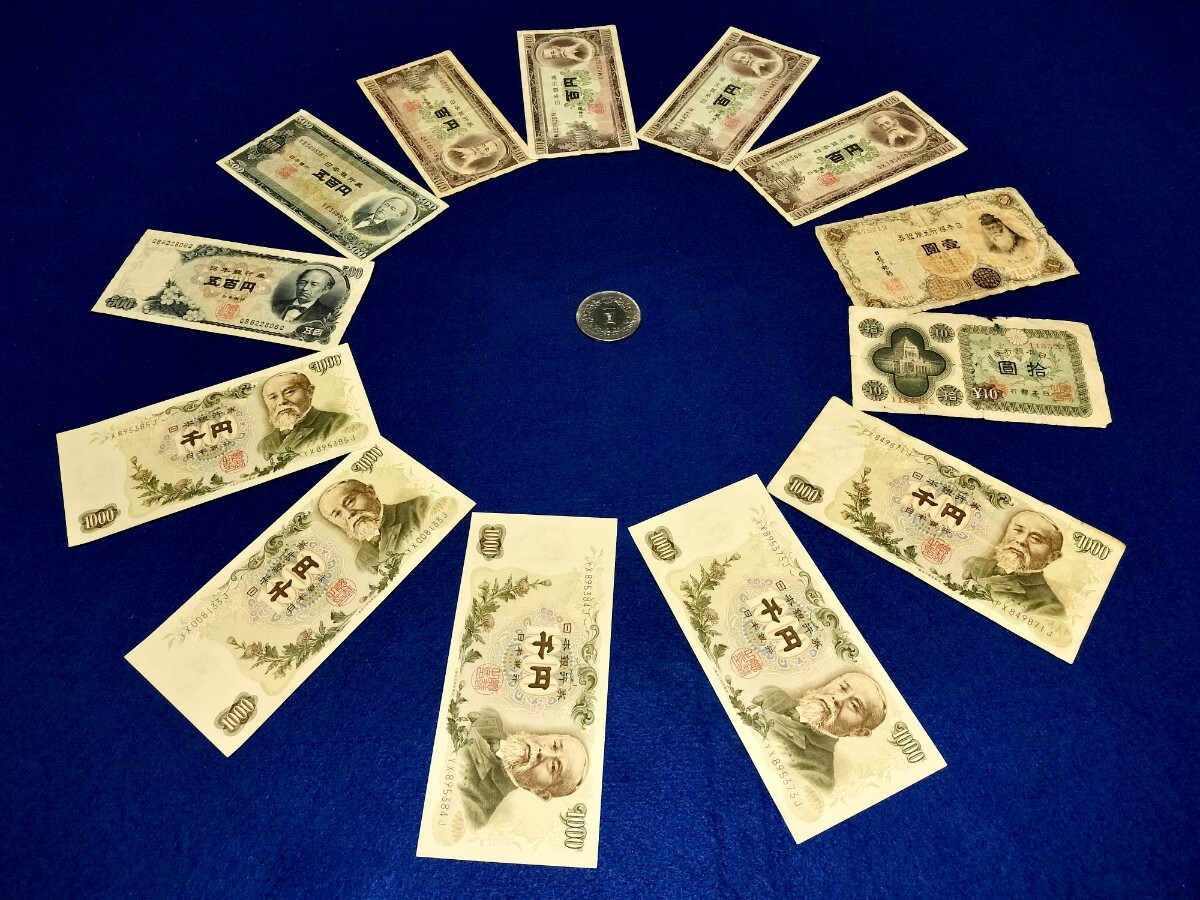 - 一圓銀貨(明治九年)旧紙幣 千円札 五百円札AとB 百円札 拾円札 壱円札 硬貨 伊藤博文 岩倉具視 板垣退助 熊本 神風連の乱