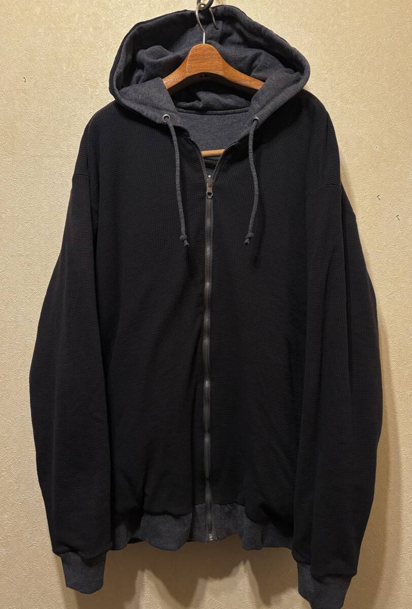 > 美ダブルWフェイス希少リバーシブル00sオールド黒サーマル/スウェット濃グレー2トーン2toneパーカXXL2XLスエット地フーディーy2kビンテージ