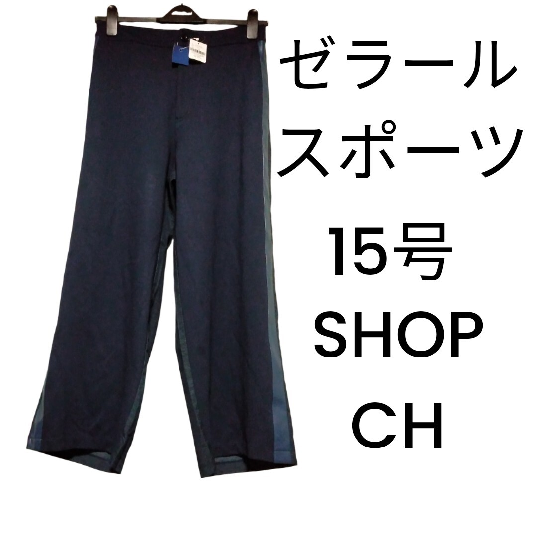 - ゼラールスポーツ合皮サイドライン異素材切り替えワイドパンツ15号新品未使用ショップチャンネルブルーグレー