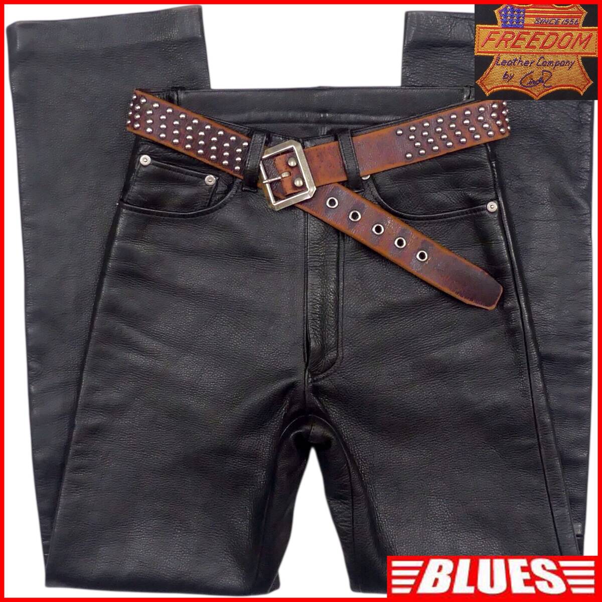 > 即決★FREEDOM★レザーパンツ W28 フリーダム メンズ 70 黒 ブラック 本革 ライダースパンツ 本皮 パンクロック ライディング ツーリング