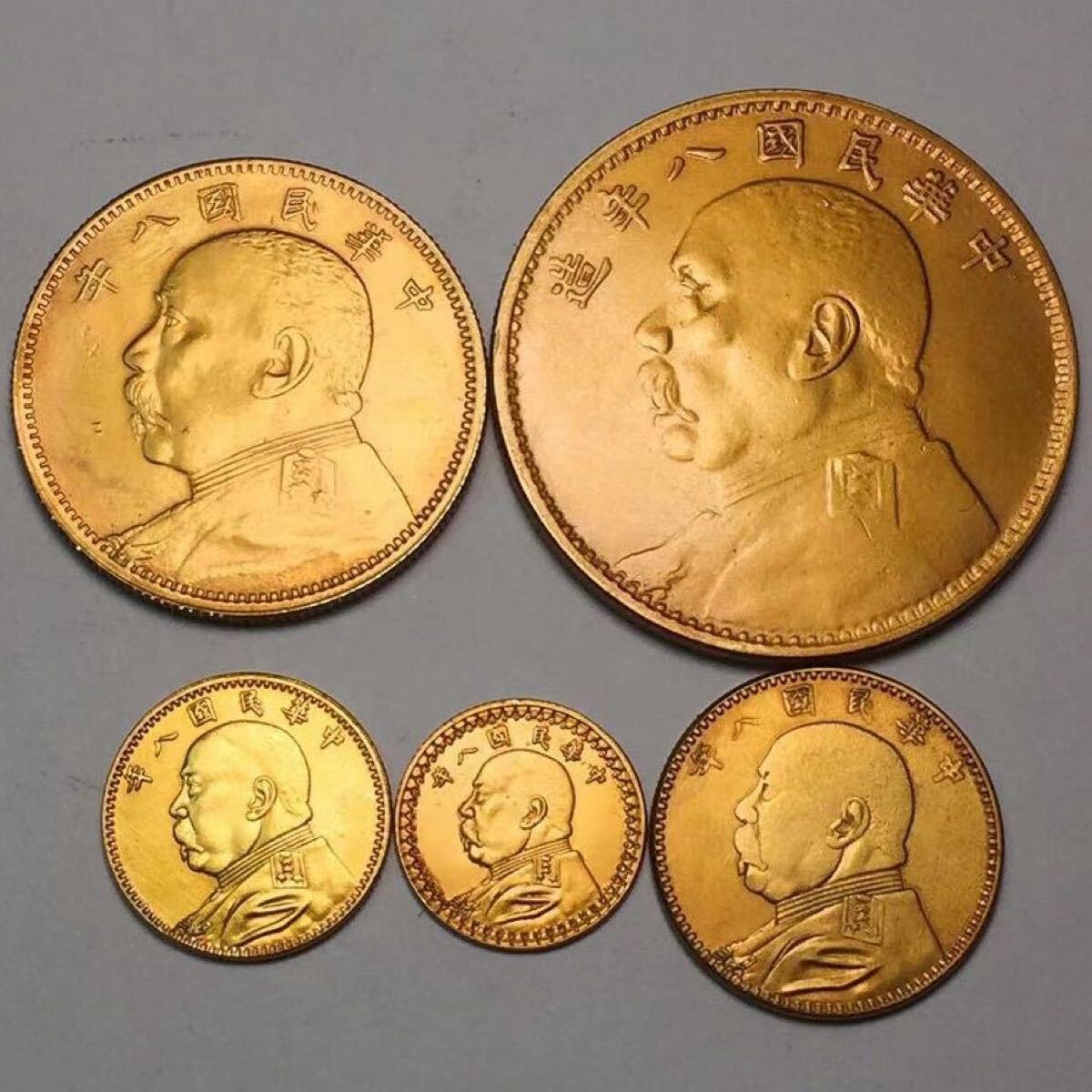 - お得!! 極美品 希少 中国 古銭 中華民国8年 5枚セット 袁世凱 人物記念硬貨 大型金貨 小型金貨 外国硬貨 ケース付き コレクション 収蔵品