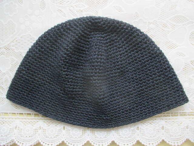 - 即決/ハンドメイド 手編み オリジナル 軽くて通気性よい 綿麻 大きめ 高さ16cm/濃紺/帽子/イスラム帽/ビーニー ニット キャンプ アウトドア
