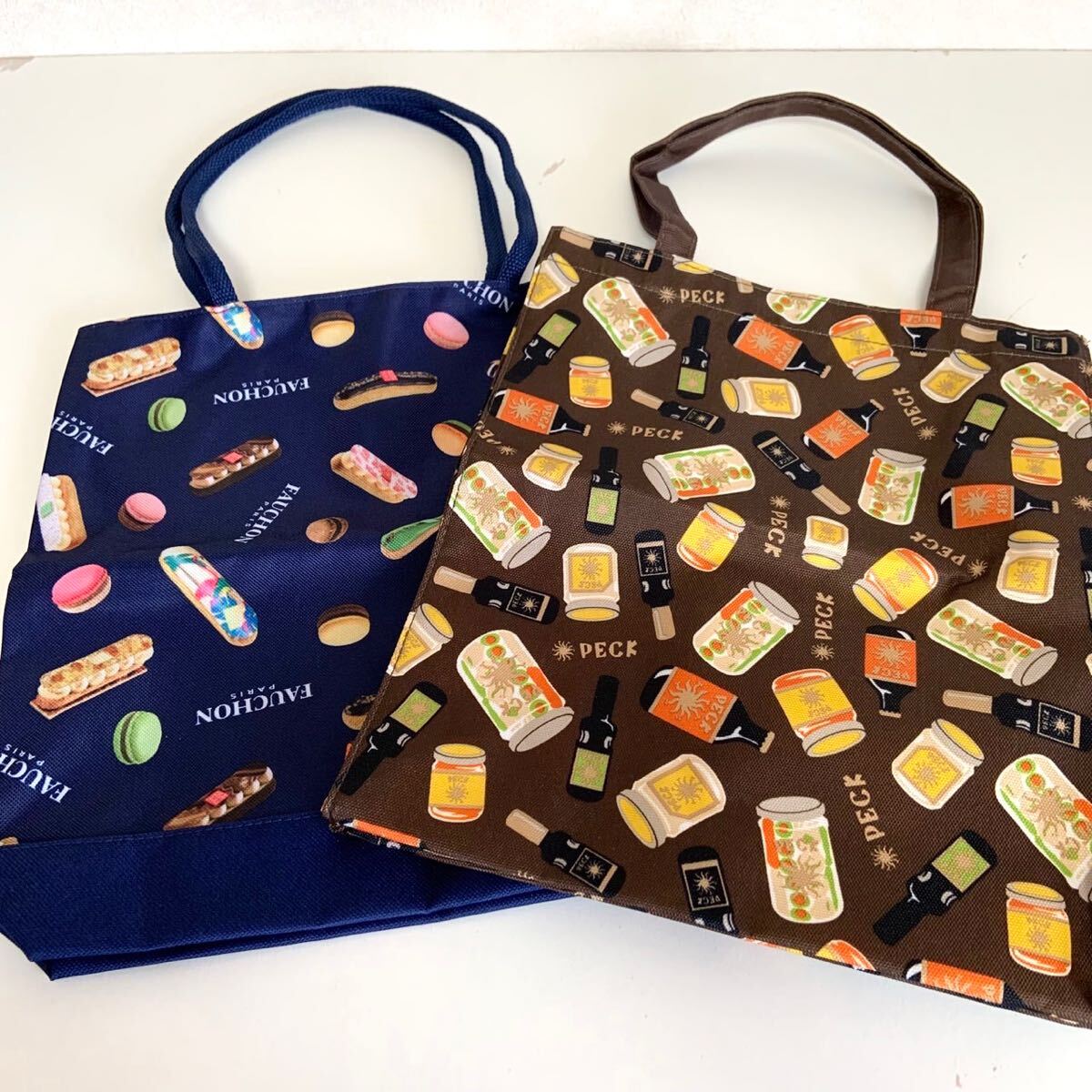 - 未使用 FAUCHON PARIS フォション PECK ペック 高島屋 オリジナル トートバッグ 2点セット 非売品 スイーツ柄 バッグ かばん エコバッグ