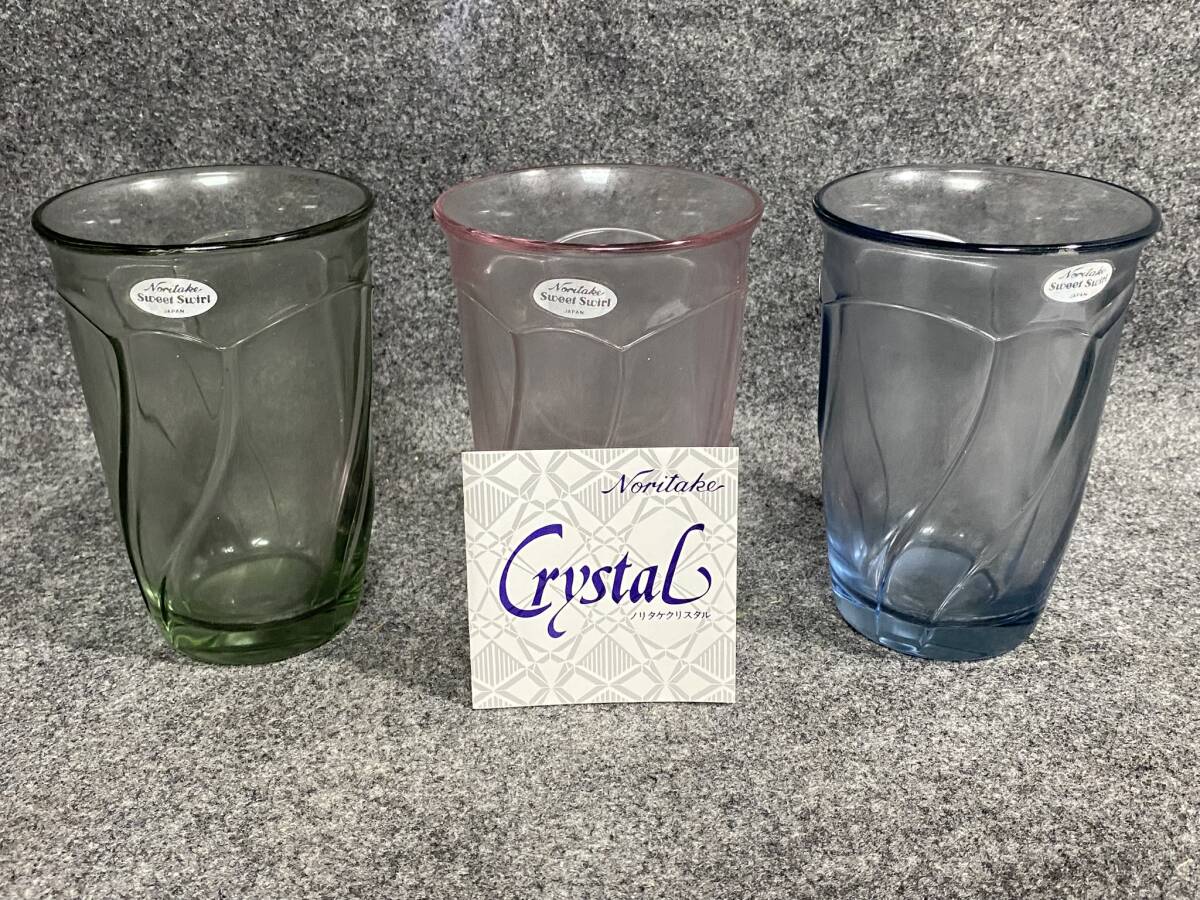 > ノリタケ「Sweet Swirl」 ライトブルー、ピンク、グリーン 3組 Noritakeクリスタル ゴブレット ワイングラス