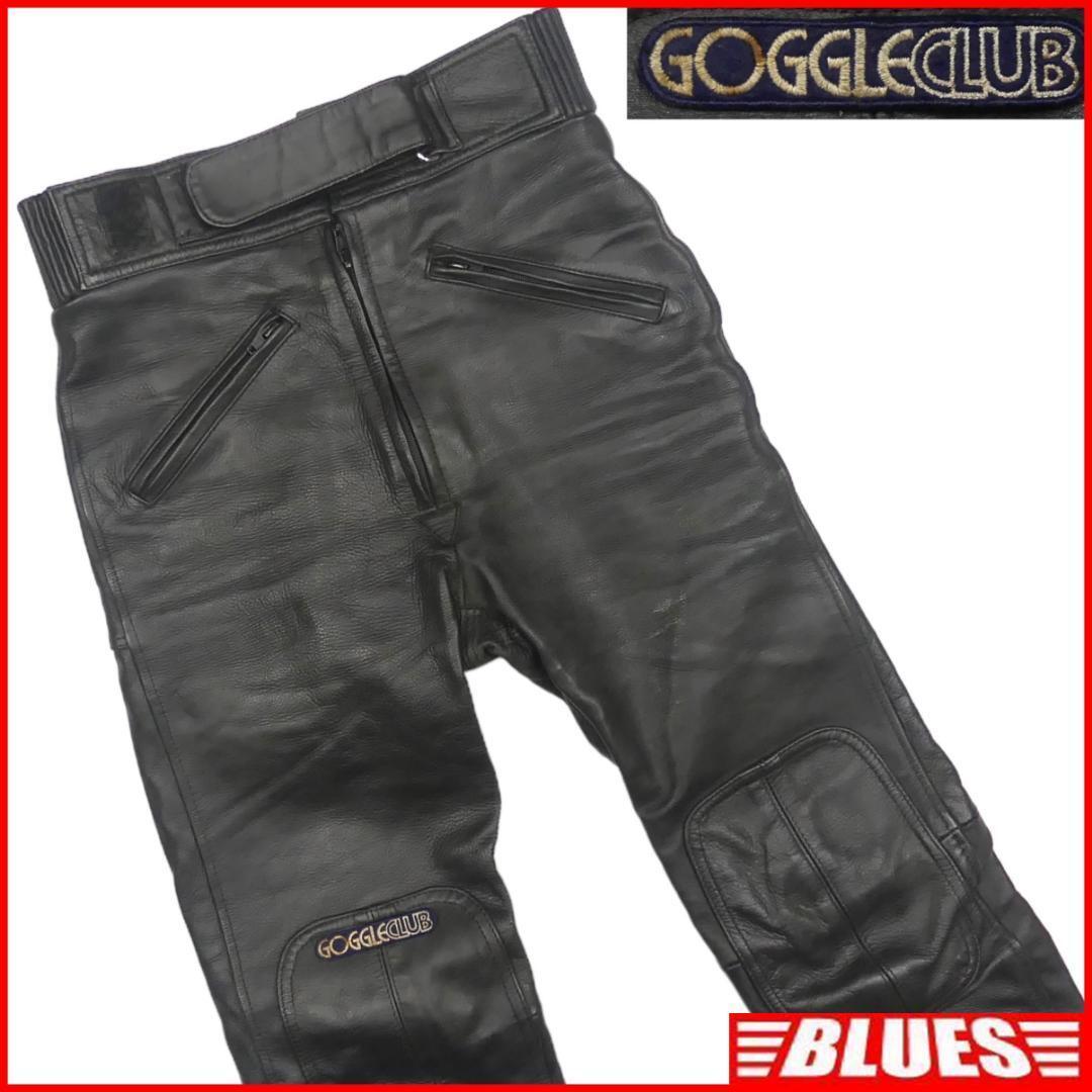 - 即決★GOGGLECLUB★メンズ レザーライディングパンツ 誤グルクラブ 黒 本革 ライダースパンツ 本皮 ヒザパッド 裾ジップ ツーリング