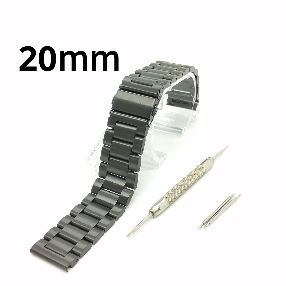- 送料無料 腕時計 交換ベルト 黒 ブラック 3連 直カン 20mm 無垢 ステンレス バックル プッシュ式 バネ棒 バネ棒外し付 B8