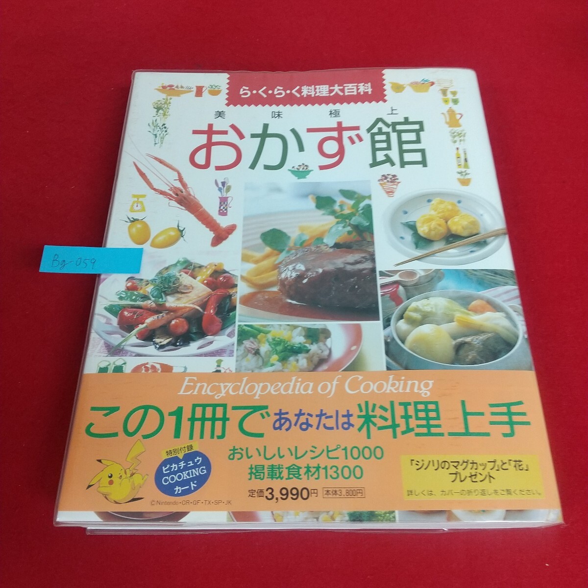 - Bg-059/美味極上おかず館 らくらく料理大百科 小学館 1998年3月初版 帯あり、付録ピカチュウ料理カードあり。日焼け傷汚れあり。/L4/70528