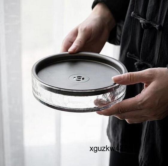 - 耐熱硝子 茶盤 茶こぼし ガラス 建水 けんすい 水盂 茶承 トレイ トレー 煎茶 中国茶 台湾茶 中国茶器 茶道具/XS476