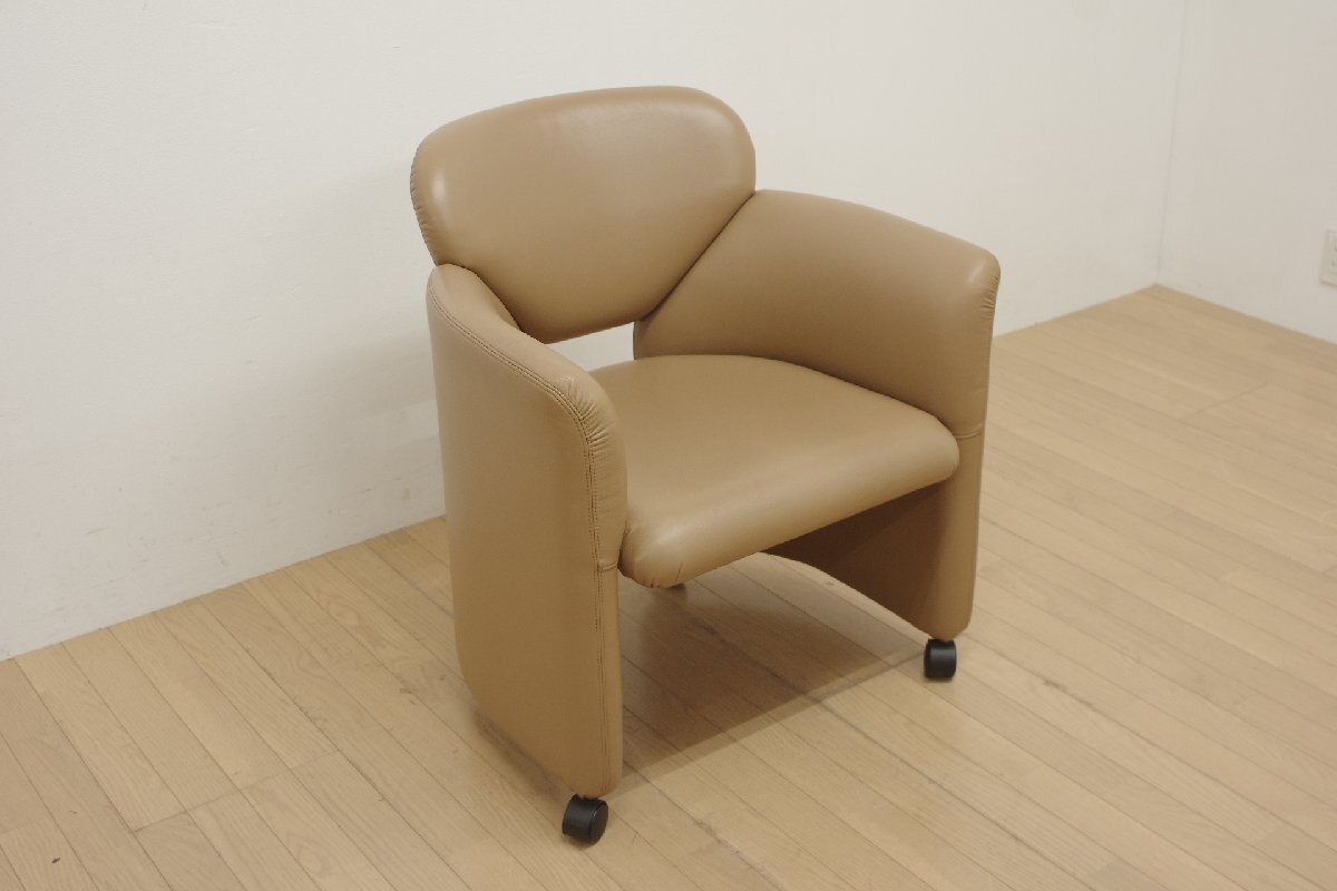 > フクラ HUKLA キャスター付きシングルソファ 1人掛けソファ 1Pソファ ベージュ 合皮 シンプル 事務所 オフィス 会社 書斎 ダイニング (D)