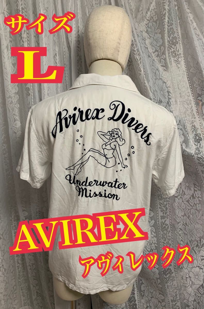 - AVIREX アヴィレックス 半袖シャツ 刺繍 デカロゴ 白 アロハ Lサイズ