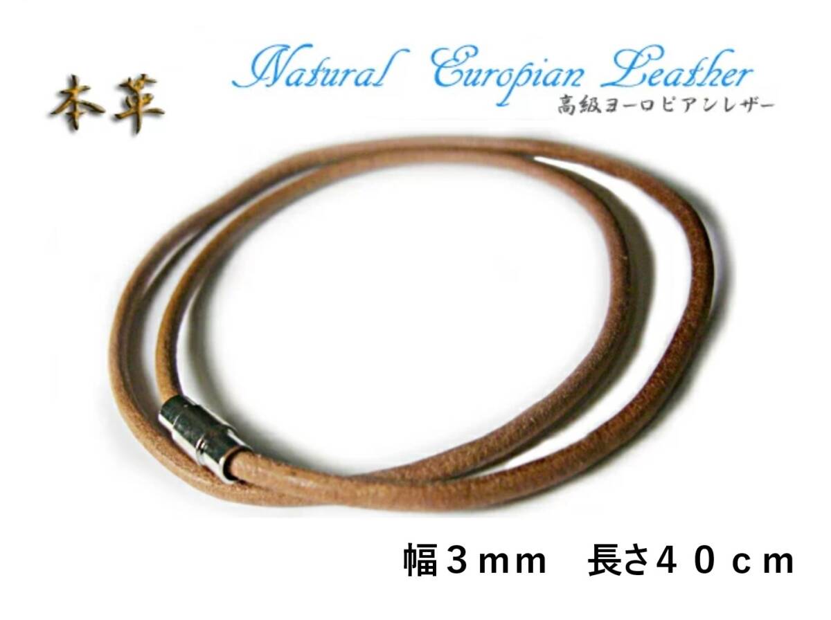 > 本牛革 3mm×40cm ハワイアンジュエリー用革紐 レザーチョーカー ナチュラル ベージュ ネックレス ヨーロピアン極上レザー マグネット