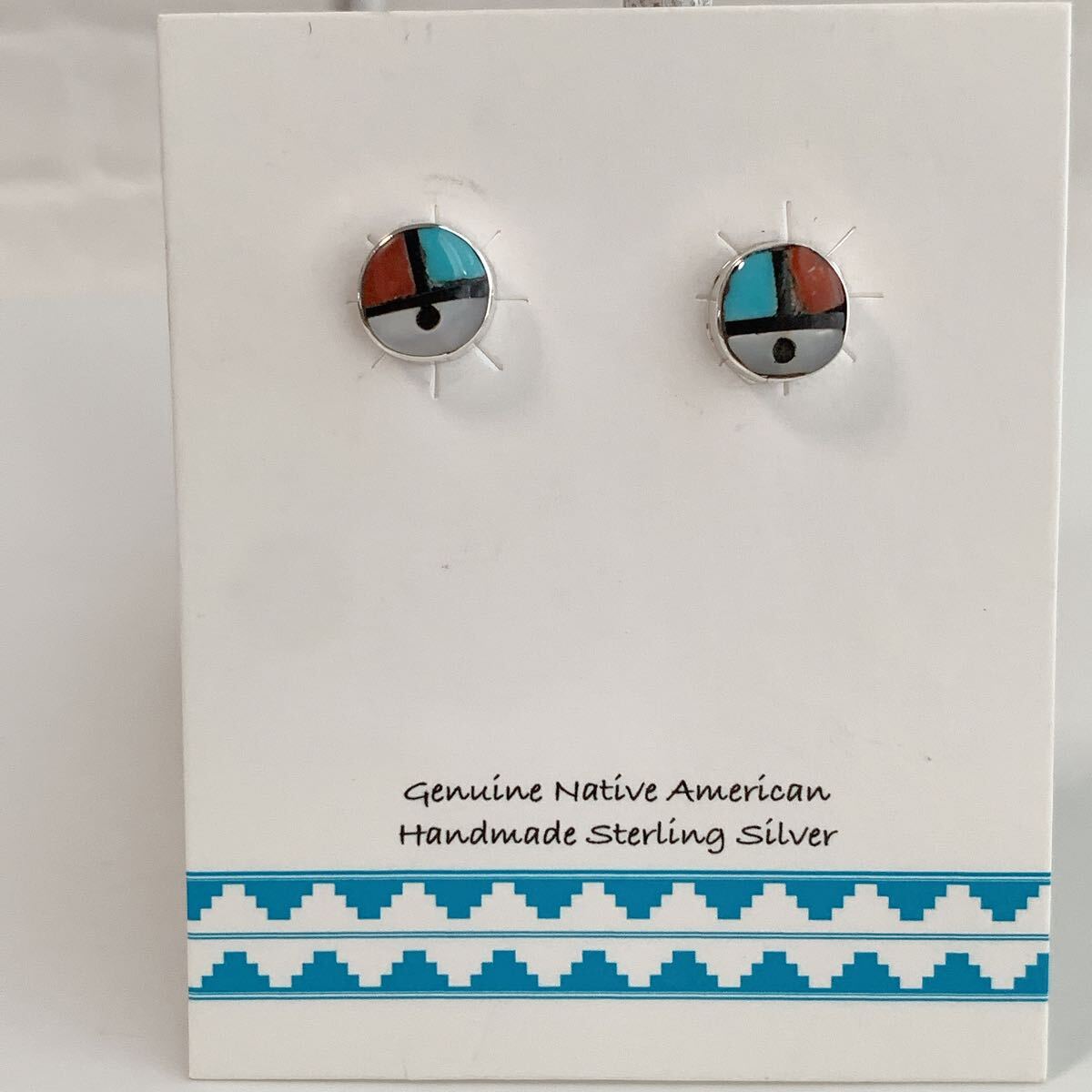 - インディアンジュエリー キャッチピアス サンフェイス シェル ズニ Zuni ズニピアス ズニインレイ ハンドメイド シルバーピアス