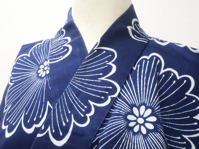 - 《京都一輝堂》【着物】浴衣 昭和レトロ コーマ地 花柄 身丈約142cm 裄丈約62.5cm r7z05-481