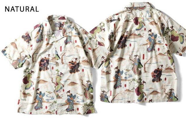- 日本製コットンレーヨンアロハシャツ「歌川国芳・隅田川之朝霧」◆HOUSTON ナチュラル XLサイズ 41169 ヒューストン 和柄 ハワイアン 国産