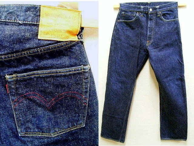 - ◇即決[W31]濃紺 WAREHOUSE 1003XX 大戦モデル 10周年記念 2005AW 限定 赤ペンキ ステッチ 天然藍 赤タブ デニムスレーキ デニム■3800