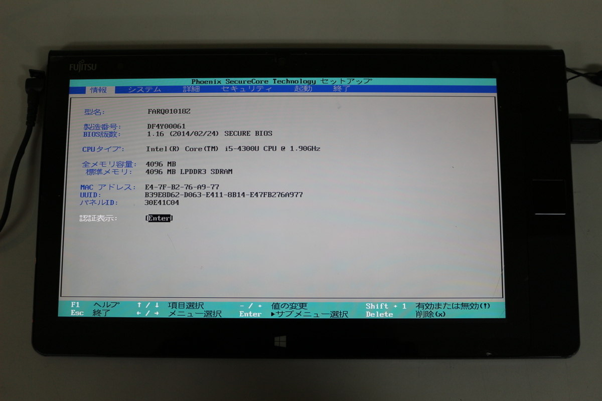- ジャンク品タブレット 富士通 ARROWS Tab Q704/PV FARQ01018Z i5 メモリ4GB SSD128GB 12.5inch カメラ内蔵 OS無 起動確認済 代引き可