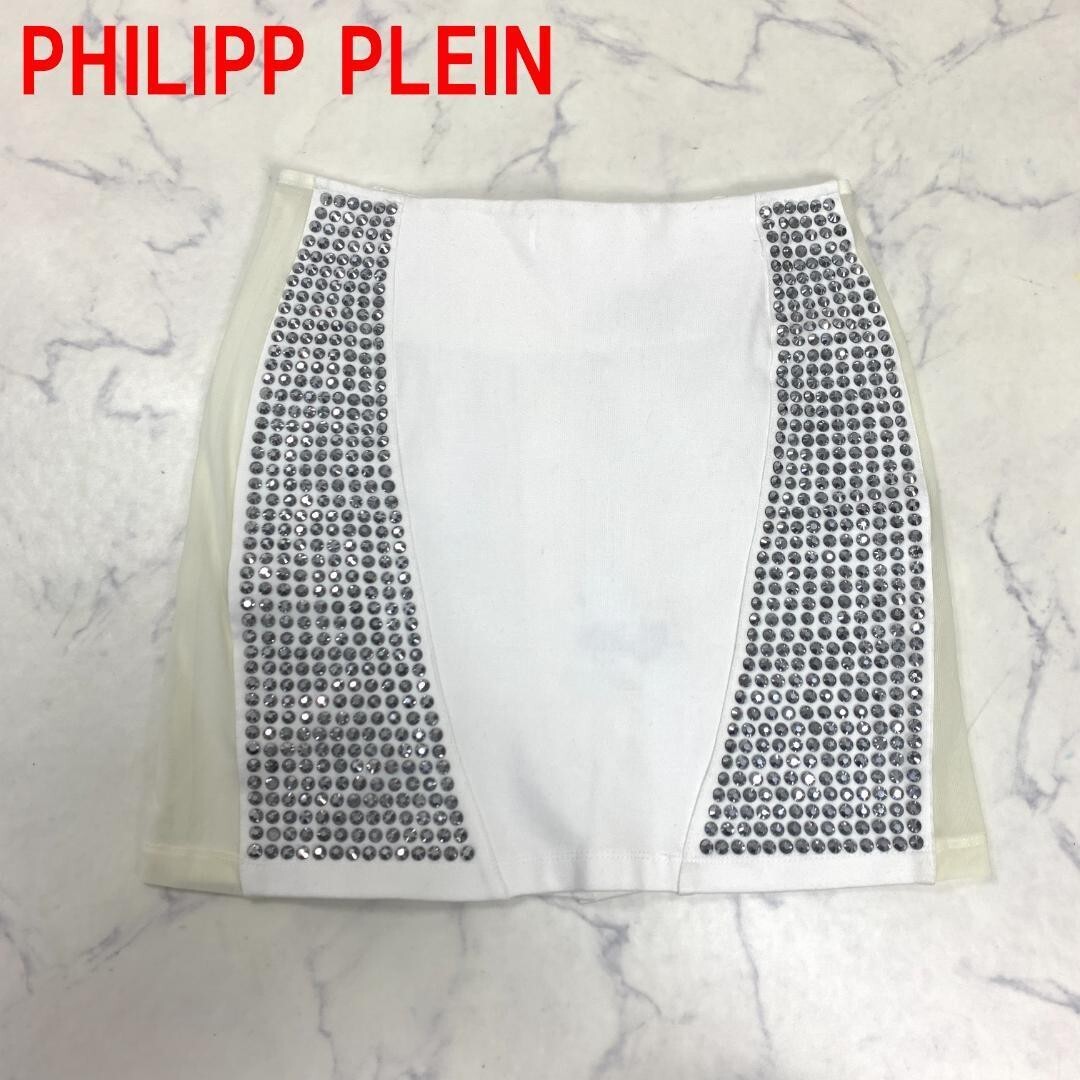 - A5764 フィリッププレイン ひざ丈スカート PHILIPP PLEIN ホワイトミニ スタッズ 白 S