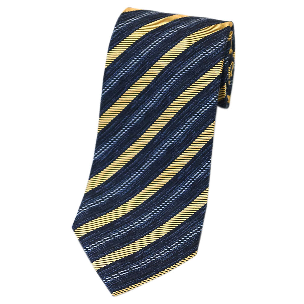 - 未使用 ゼニア ブランド ネクタイ エルメネジルド・ゼニア ストライプ 高級 シルク 100% ネイビー ミモザ イエロー 紺 黄色
