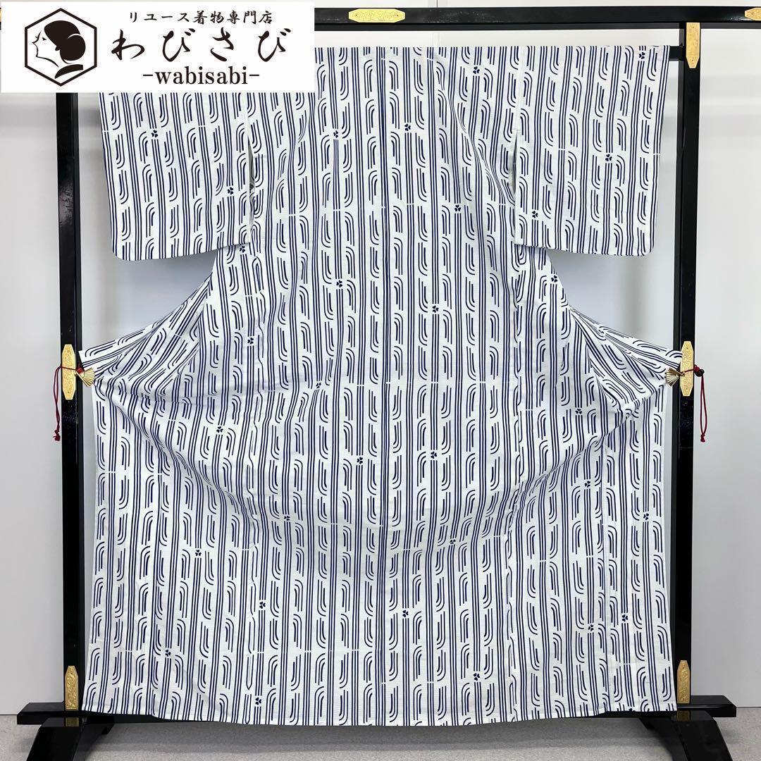 白色の上品なお色味青味の縦柄模様にクローバーの柄行がデザインされた素敵なお品でございます。