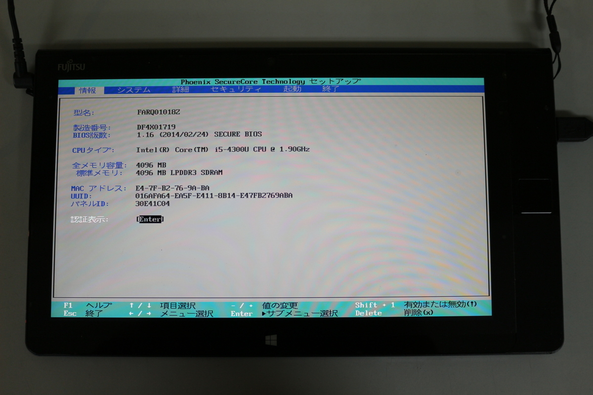 > ジャンク品タブレット 富士通 ARROWS Tab Q704/PV FARQ01018Z i5 メモリ4GB SSD128GB 12.5inch カメラ内蔵 OS無 起動確認済 代引き可