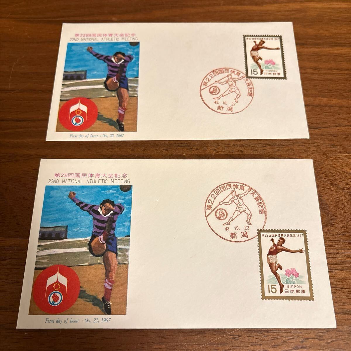 - 切手 第22回国民体育大会記念 初日カバー 2セット FDC 初日印 初日記念カバー スタンプ 押印 1967 昭和42年