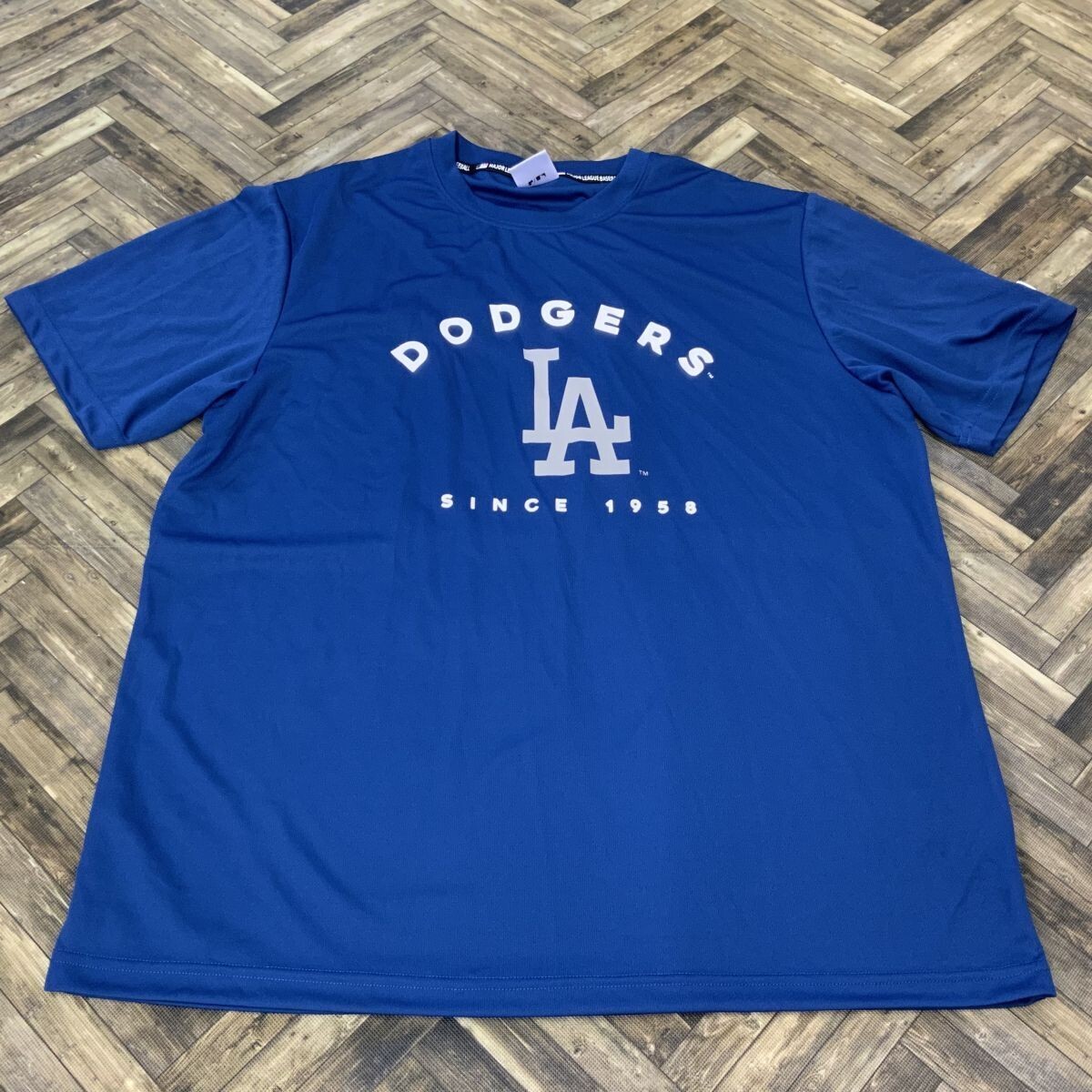 - QS1489 MLB ロサンゼルス・ドジャース LA ビッグロゴプリント 半袖Tシャツ スポーツウェア 野球 ブルー メンズ4L