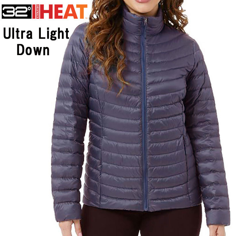 - 新品 L ★ コストコ 32HEAT レディース ウルトラライト ダウン ジャケット グレー サーティーツー ディグリース 軽量 アウター ジップ