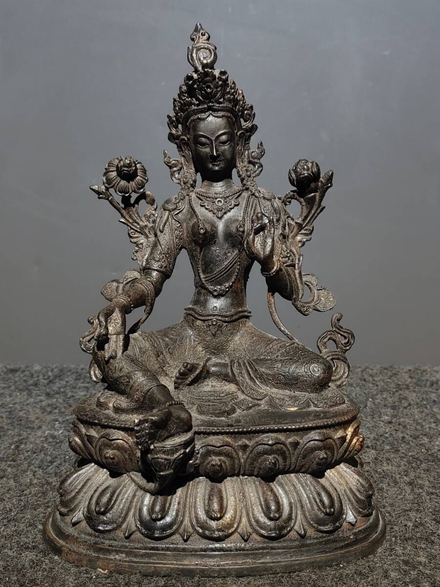 - 【超珍館蔵】銅製 泥金 綠度母像 仏像 宗教 仏教古美術 供養品 古賞物 古董品 古美術品 時代物 旧家蔵出 稀少珍蔵品