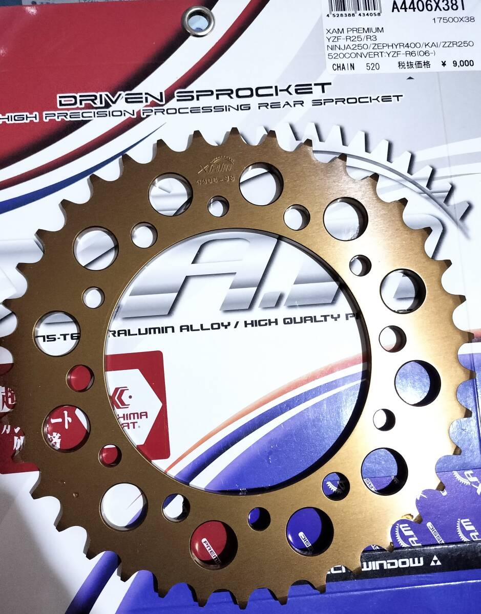 > XAM プレミアム A4406X38 KAWASAKI スプロケット NINJA250 ZEPHYR400 KAI ZZR250 YZF-R6 YZF-R25/R3