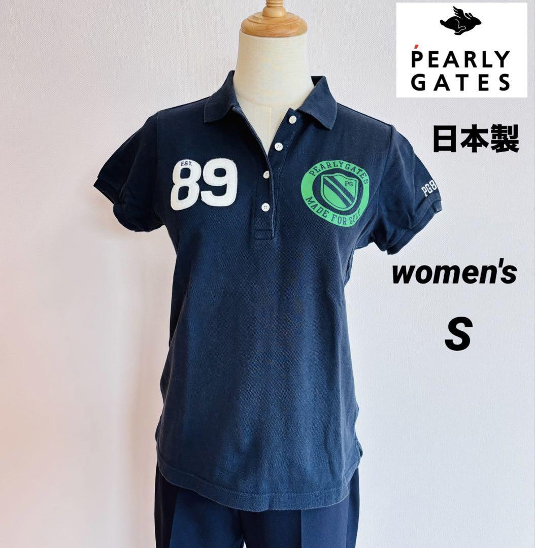 - PEARLY GATES パーリーゲイツ レディース 日本製 半袖ポロシャツ 刺繍ビッグロゴ ネイビー S