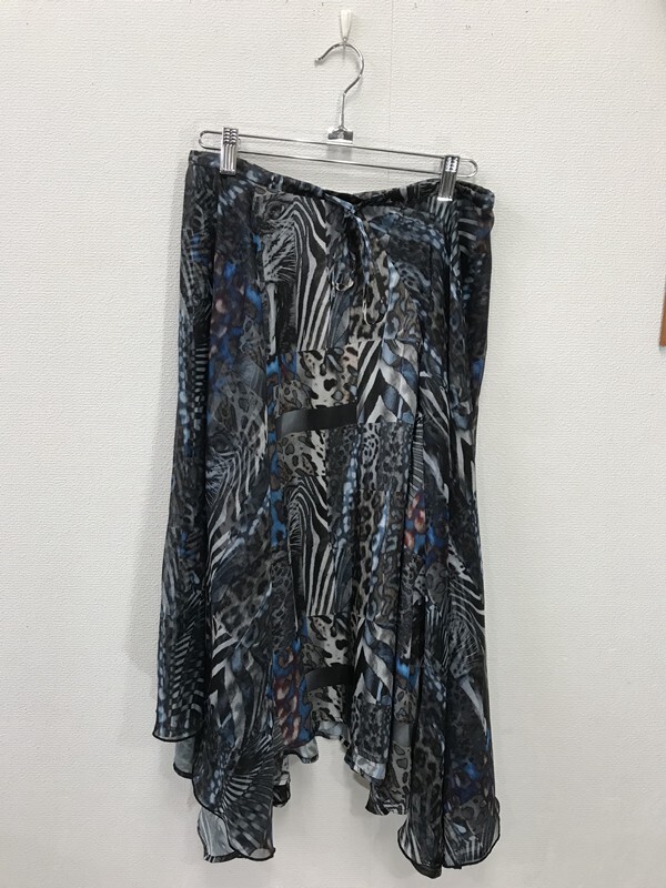 - 4017 【 DIESEL ディーゼル 】紐リボン付き シフォンスカート サイズ:XS 色:ネイビー柄入り