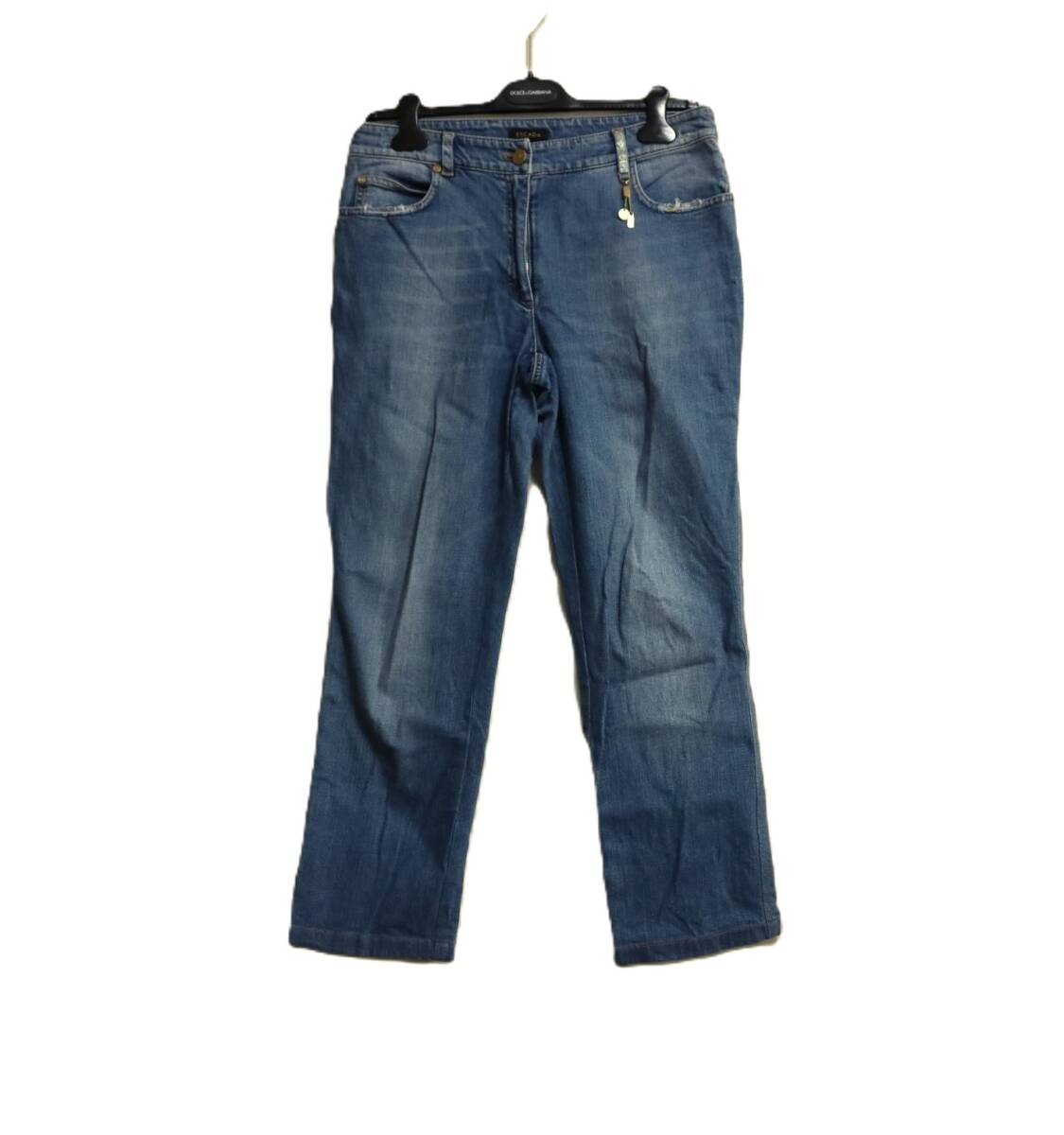 > 【即決】百貨店購入 ESCADA エスカーダ◆ビジュー ゴールド チャーム ロゴパネル ストレッチ ジーンズ デニム パンツ 40 yu