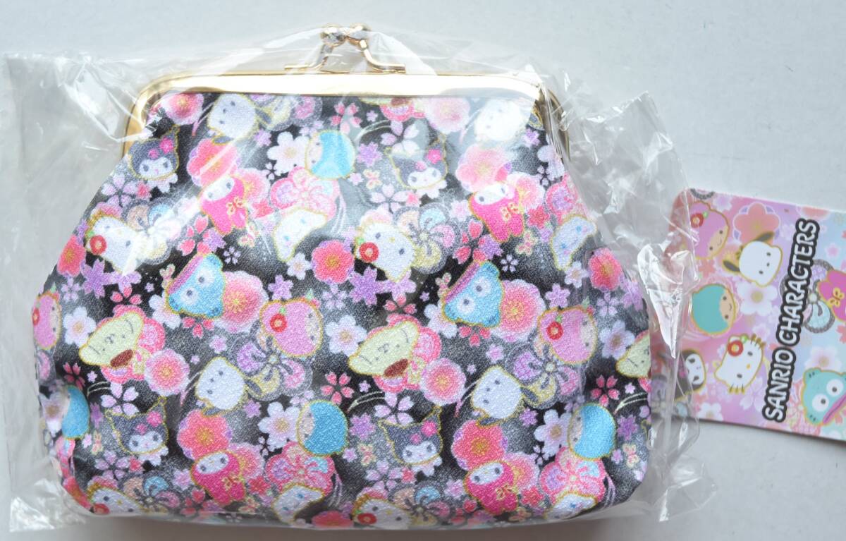 > がまぐちポーチ カラフル和柄 サンリオキャラクターズ ブラック 未使用新品 キティ ハローキティ レア品 ポーチ がまぐち