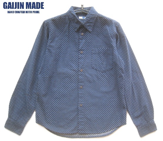 > 激シブ!!ガイジンメイド GAIJIN MADE ハリラン*胸ポケット付き クロスステッチ刺繍総柄コットンシャツ 2 M 紺×白 H.R.MARKET
