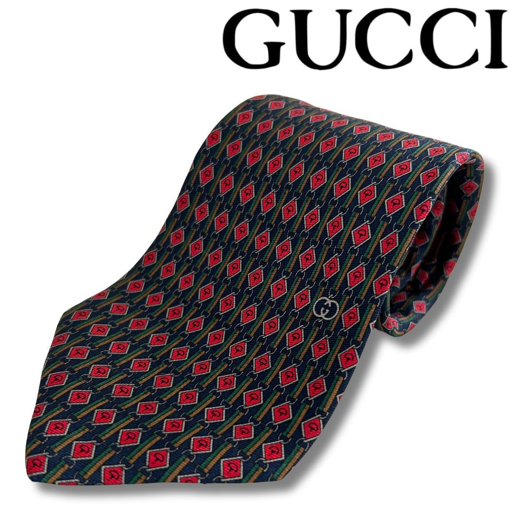 - 【極美品】グッチ ネクタイ シルク100% グリーン系 ダイヤモンドパターン