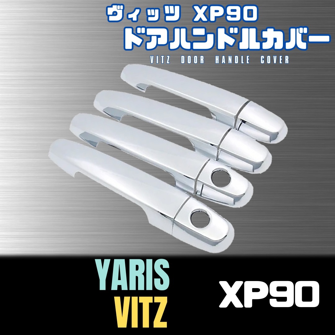 - 【トヨタ ヴィッツ】 ドアハンドルプロテクター / シルバーメッキ / XP90 海外ヤリス 対応 / ドアノブカバー 両面テープ取付