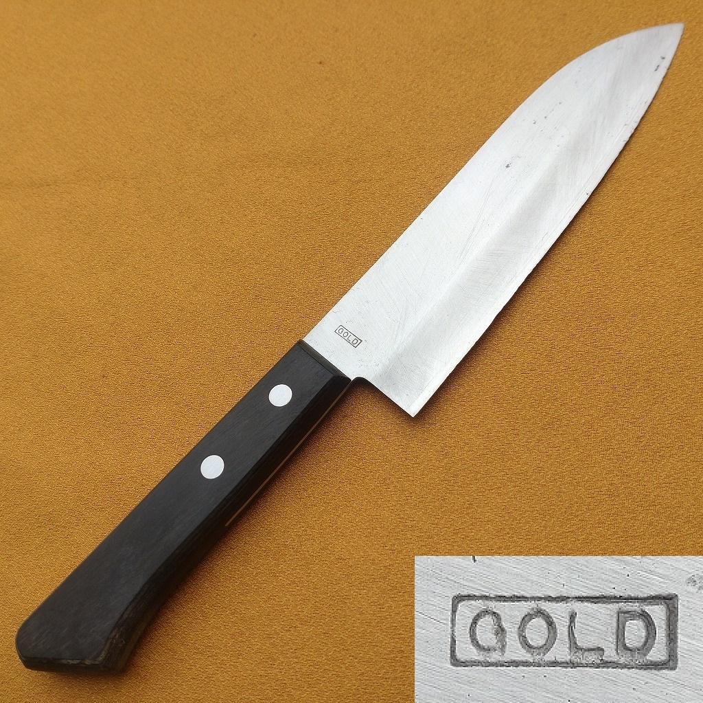 - 万能包丁 GOLD 刃長約163㎜ 両刃 洋包丁 三徳包丁 調理器具 刃物 日本製 【4152】
