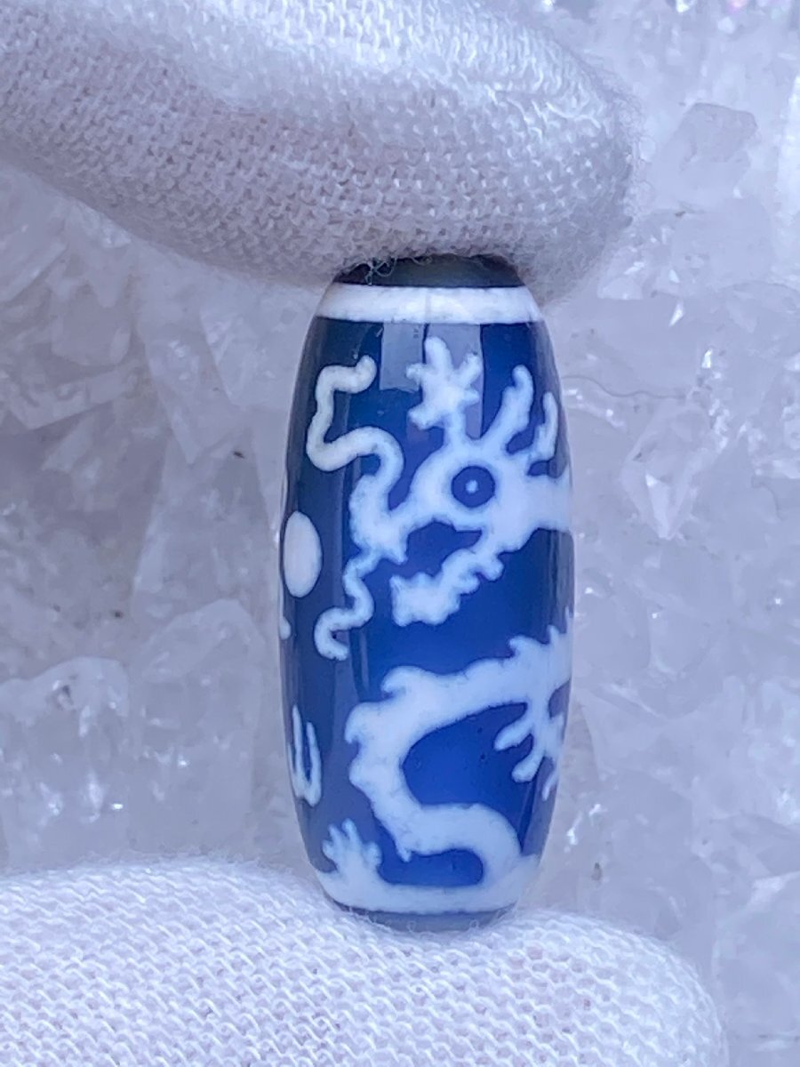 - 即決 0524e689 新入荷★【チベット青玉髄龍神天珠】★ 25x11mm(新品)