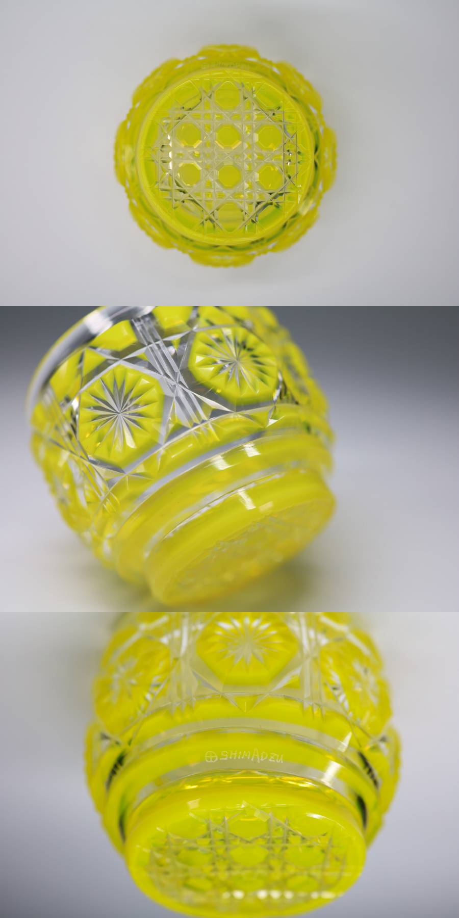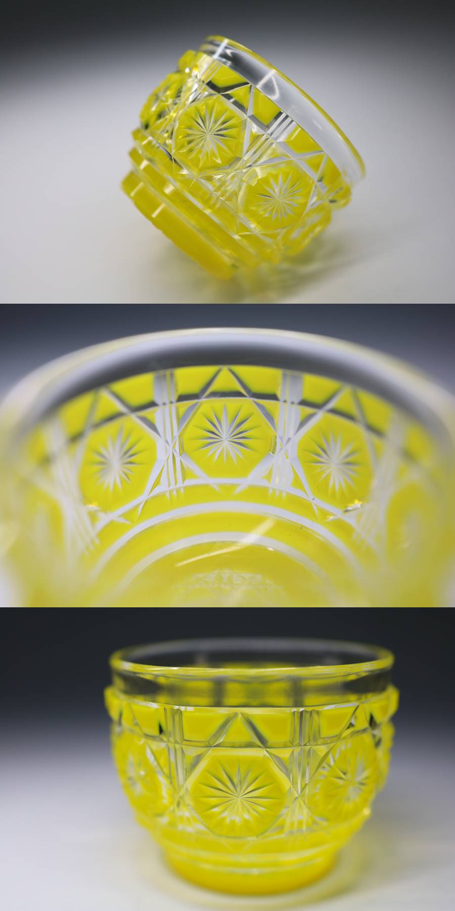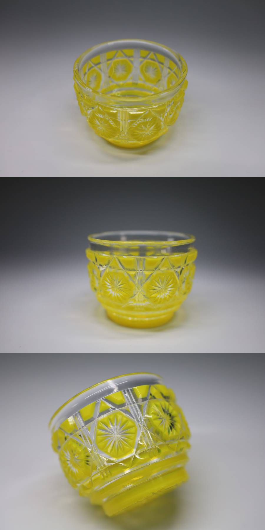 - ◇雅◇ 復元 薩摩切子 薩摩ガラス工芸 色被せガラス 切子猪口 尚古集成館監修 切子ガラス ぐい呑 猪口 黄布 共箱 /MK.25.5[J42.6] OOSN7