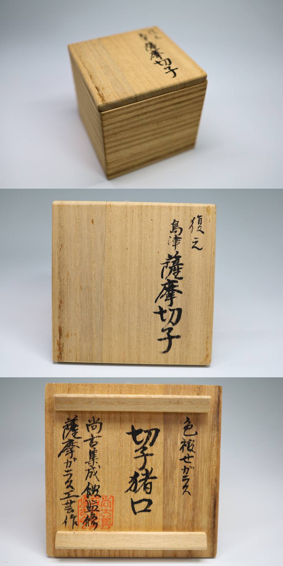 > ◇雅◇ 復元 薩摩切子 薩摩ガラス工芸 色被せガラス 切子猪口 尚古集成館監修 切子ガラス ぐい呑 猪口 黄布 共箱 /MK.25.5[J42.6] OOSN7
