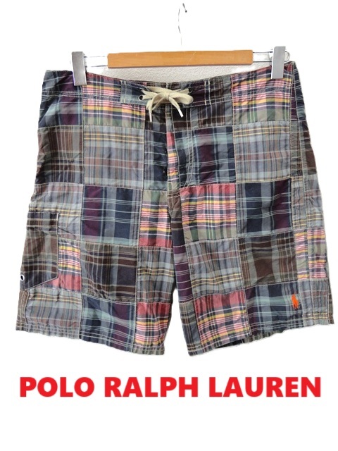 - POLO by RALPH LAUREN:ラルフローレン/パッチワーク マドラスチェック柄/コットン×ナイロン/サーフパンツ/ボードショーツ/ハーフパンツ/30
