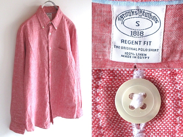- ネコポス対応 Brooks Brothers ブルックスブラザーズ REGENT FIT リージェントフィット リネンシャツ BDシャツ S メランジレッド 国内正規