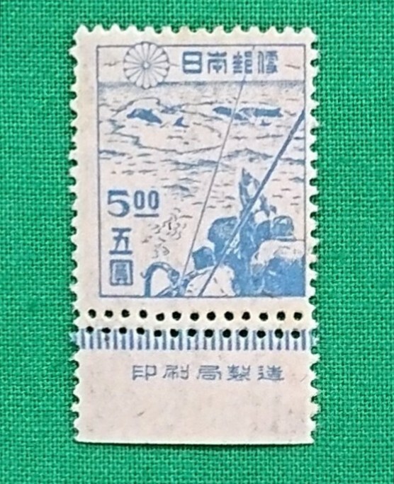 - 珍品!エラー切手 定常変種 2重目打ち 捕鯨 印刷局製造銘版付 五圓 極上美品 第2次新昭和切手 NH VF OG №3300