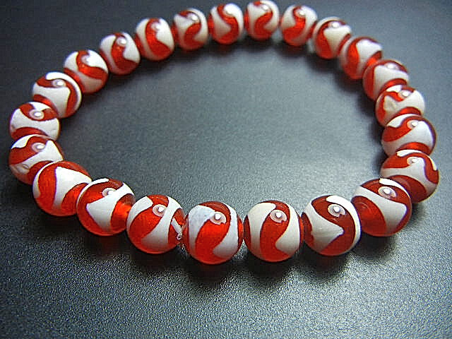 - ★西蔵天珠数珠★JFV3576 赤瑪瑙 朱砂 虎牙天珠 数珠 8mm超勧め