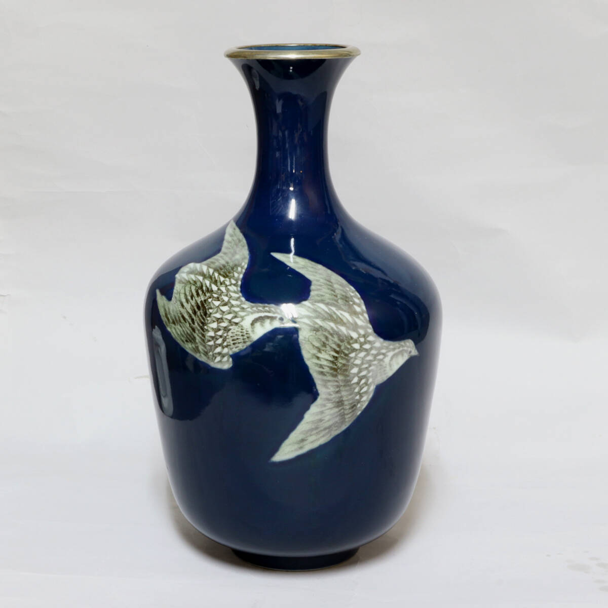 - 初代 宮川香山 眞葛香山 (帝室技芸員) 鶉文釉下彩瑠璃花瓶 真贋保証
